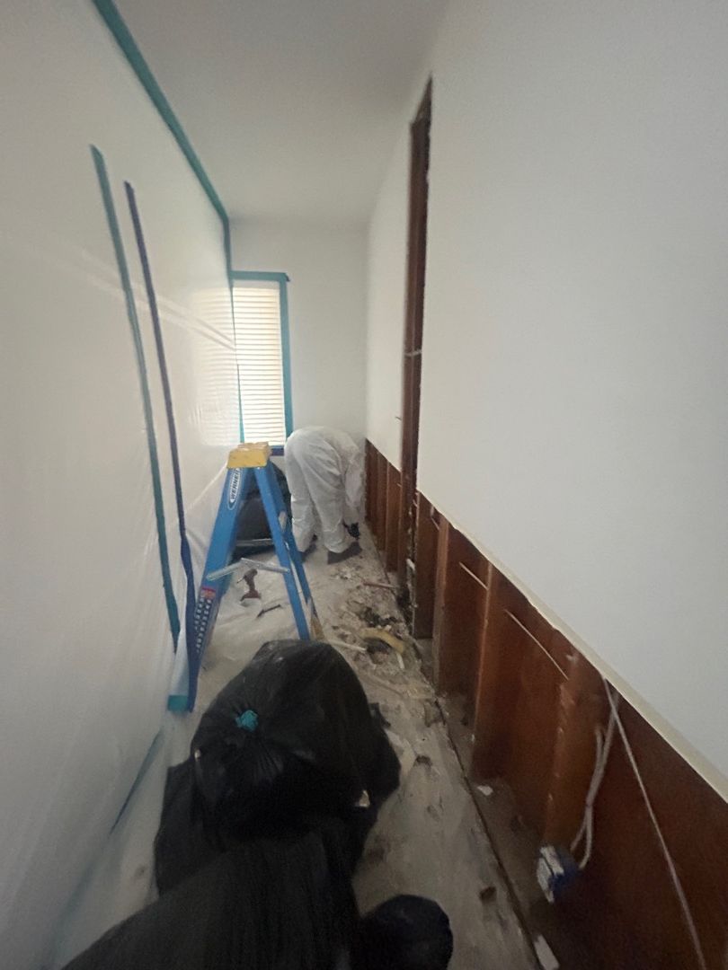 This job began on 10/21/25 when the homeowner reported dining room water damage, initially suspected to be from an irrigation line but later confirmed to be caused by a cracked cast-iron toilet drain line uncovered during demolition on 10/24. All affected materials—including carpet with secondary damage—were removed, and the area was cleaned, sanitized, lightly sanded, and prepped for mold clearance. Mold remediation prep was completed on 10/31, and post-mold clearance testing passed on 11/04. Multiple service checks ensured proper drying, with equipment left on-site until moisture levels improved. The team coordinated closely with the homeowner and testing company, completing documentation, scheduling, inspection updates, and job progress notes through 11/06, when the majority of work was finalized.